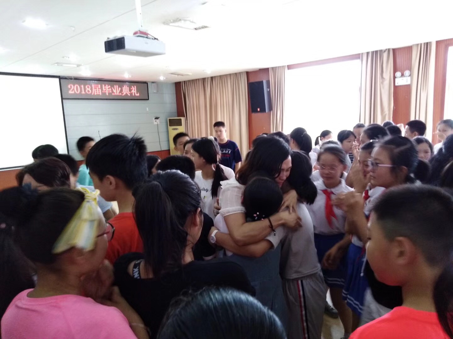 第二篇章:回顾 感恩。电子屏幕中不断地回放着一年级到六年级孩子们在学习和生活中的各种照片,学生代表在黑板上写下了“请假条”,老师们一句句深切的叮咛和祝福,让孩子和家长都抑制不住激动的泪水。师生间的真情告白和深情拥抱,都在此刻定格成了一张又一张让人难忘的照片,也把此次毕业典礼推向了高潮。。